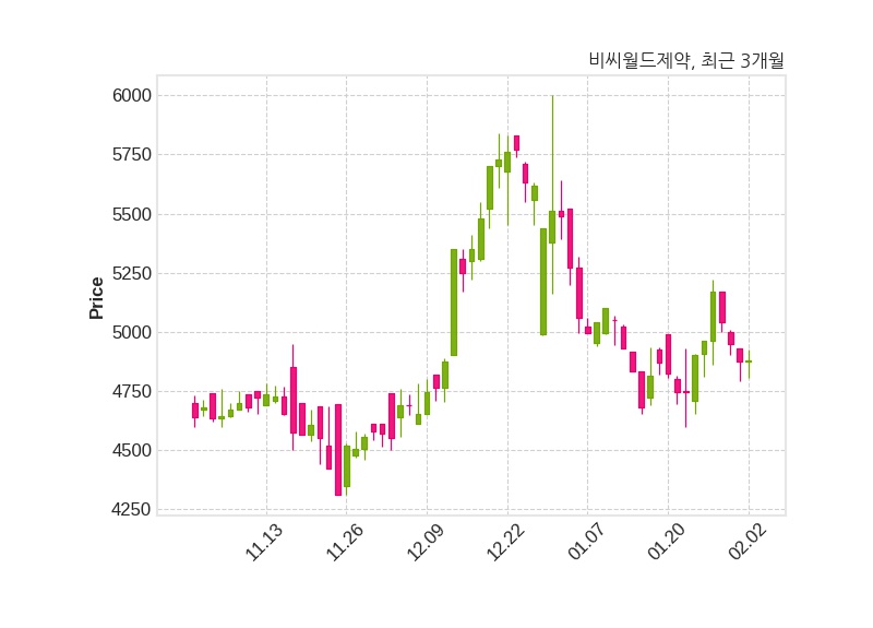 한편, 비씨월드제약의 11시 24분 현재주가는 4,880원으로 직전 거래일 대비 5원(+0.1%) 상승이며, 거래량은 10,155주이다.