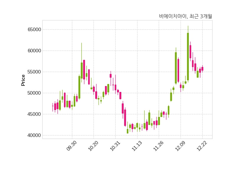 한편, 비에이치아이는 장 마감 이후 해당 기업공시를 발표했으며 오늘 종가가 55,400원, 거래량은 915,037주로, 직전 거래일 대비 500원(+0.91%) 상승했다.