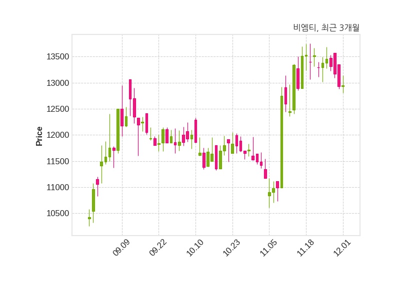 한편, 비엠티는 장 마감 이후 해당 기업공시를 발표했으며 오늘 종가가 12,950원, 거래량은 17,168주로, 직전 거래일 대비 20원(+0.15%) 상승했다.