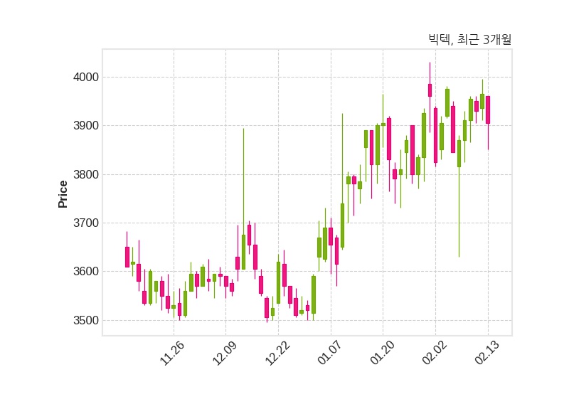 빅텍은 특별관계자 박승운의 지분율이 26.41%에서 26.37%로 변동했다고 13일 공시했다. 한편, 빅텍의 15시 07분 현재주가는 3,905원으로 직전 거래일 대비 60원(-1.51%) 하락이며, 거래량은 315,554주이다.