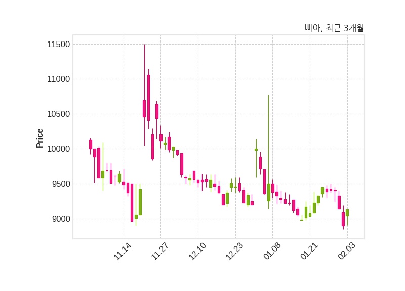 한편, 삐아는 장 마감 이후 해당 기업공시를 발표했으며 오늘 종가가 9,140원, 거래량은 40,461주로, 직전 거래일 대비 240원(+2.7%) 상승했다.