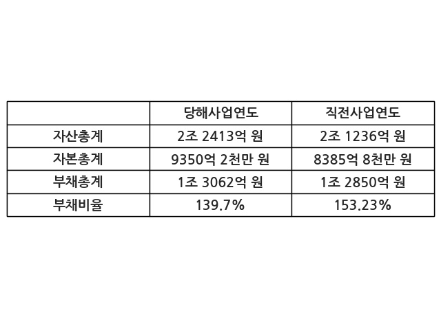 또한, 이번사업연도의 자산총계는 2조 2413억 원으로 직전사업연도 대비 5.54% 증가한 한편, 부채총계는 1조 3062억 원으로 1.65% 증가, 자본총계는 9350억 2천만 원으로 11.5% 증가했다.