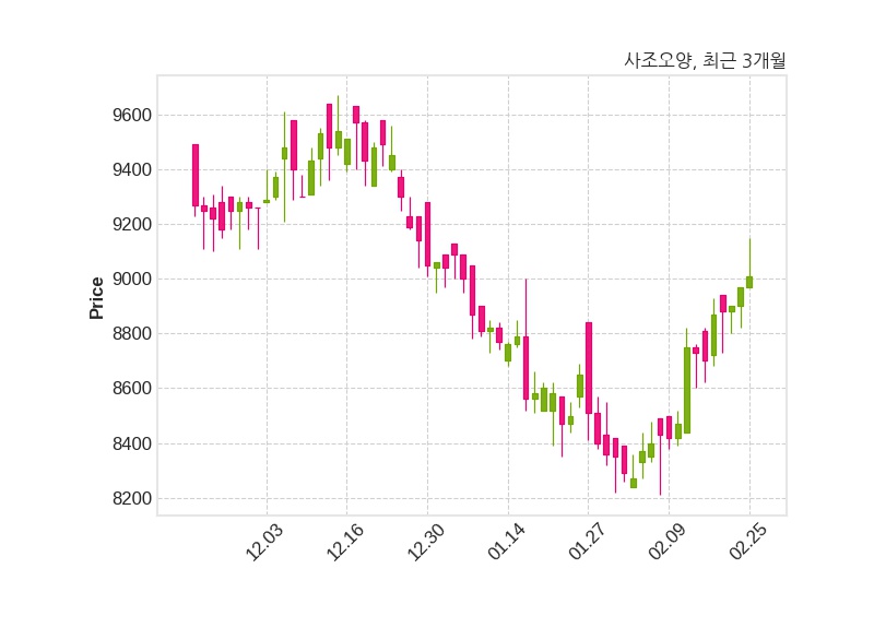 한편, 사조오양은 장 마감 이후 해당 기업공시를 발표했으며 오늘 종가가 9,010원, 거래량은 24,733주로, 직전 거래일 대비 40원(+0.45%) 상승했다.