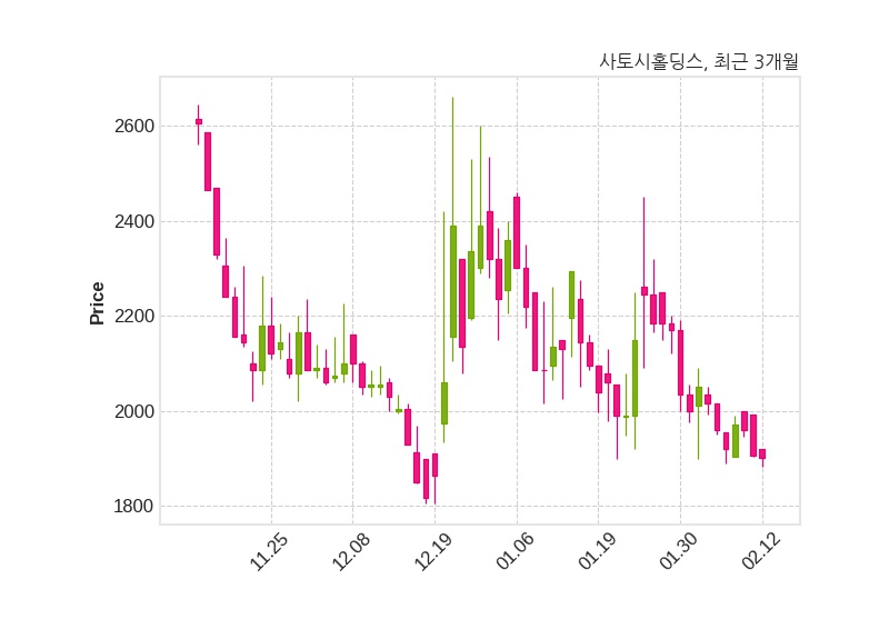 한편, 사토시홀딩스는 장 마감 이후 해당 기업공시를 발표했으며 오늘 종가가 1,902원, 거래량은 73,079주로, 직전 거래일 대비 5원(-0.26%) 하락했다.