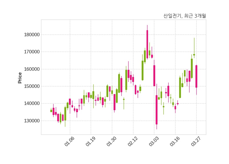 한편, 산일전기는 장 마감 이후 해당 기업공시를 발표했으며 오늘 종가가 149,300원, 거래량은 1,164,985주로, 직전 거래일 대비 19,300원(-11.45%) 하락했다.