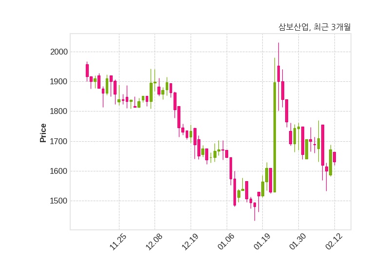 한편, 삼보산업은 장 마감 이후 해당 기업공시를 발표했으며 오늘 종가가 1,630원, 거래량은 66,753주로, 직전 거래일 대비 42원(-2.51%) 하락했다.