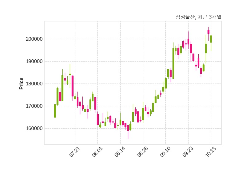 한편, 삼성물산은 장 마감 이후 해당 기업공시를 발표했으며 오늘 종가가 201,500원, 거래량은 260,152주로, 직전 거래일 대비 1,000원(-0.49%) 하락했다.