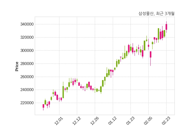 한편, 삼성물산은 장 마감 이후 해당 기업공시를 발표했으며 오늘 종가가 332,000원, 거래량은 381,738주로, 직전 거래일 대비 1,000원(+0.3%) 상승했다.