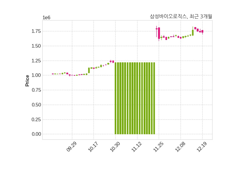 한편, 삼성바이오로직스는 장 시작 전에 해당 기업공시를 발표했으며 전날 종가가 1,733,000원이었다.