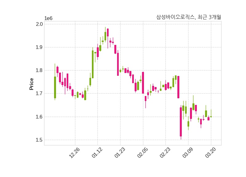 한편, 삼성바이오로직스는 장 마감 이후 해당 기업공시를 발표했으며 오늘 종가가 1,601,000원, 거래량은 31,760주로, 직전 거래일 대비 16,000원(+1.01%) 상승했다.