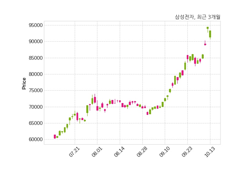 한편, 삼성전자는 장 마감 이후 해당 기업공시를 발표했으며 오늘 종가가 93,300원, 거래량은 23,788,358주로, 직전 거래일 대비 1,100원(-1.17%) 하락했다.
