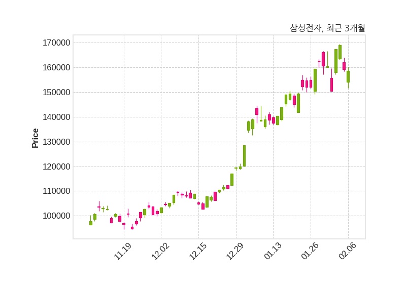 한편, 삼성전자는 장 마감 이후 해당 기업공시를 발표했으며 오늘 종가가 158,600원, 거래량은 36,252,250주로, 직전 거래일 대비 700원(-0.44%) 하락했다.