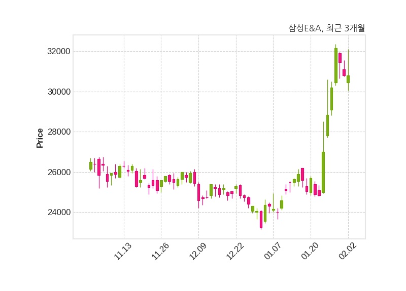 한편, 삼성E&A은 장 마감 이후 해당 기업공시를 발표했으며 오늘 종가가 30,800원, 거래량은 1,425,977주로, 직전 거래일 대비 변동이없다.