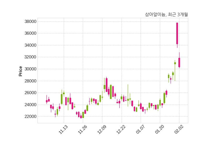 한편, 삼아알미늄은 장 마감 이후 해당 기업공시를 발표했으며 오늘 종가가 30,350원, 거래량은 248,450주로, 직전 거래일 대비 3,850원(-11.26%) 하락했다.