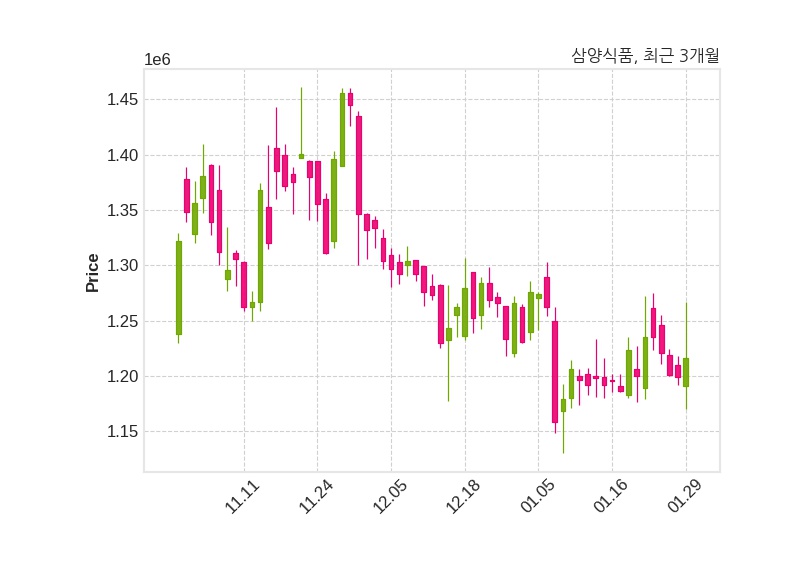 한편, 삼양식품은 장 마감 이후 해당 기업공시를 발표했으며 오늘 종가가 1,216,000원, 거래량은 141,388주로, 직전 거래일 대비 17,000원(+1.42%) 상승했다.
