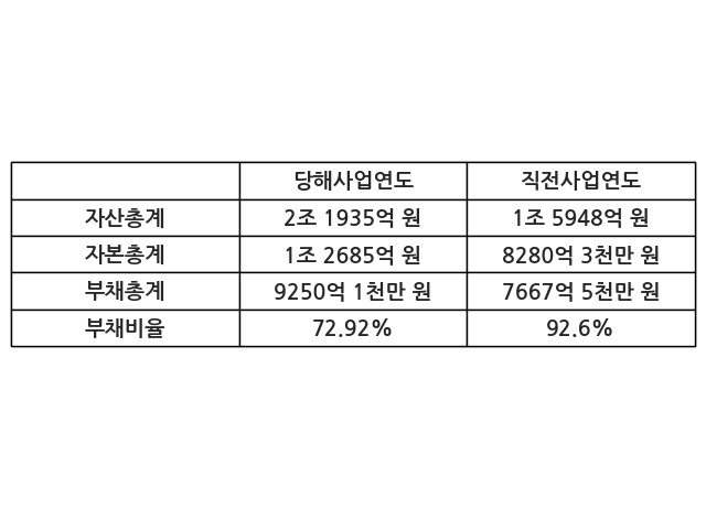 또한, 이번사업연도의 자산총계는 2조 1935억 원으로 직전사업연도 대비 37.54% 증가한 한편, 부채총계는 9250억 1천만 원으로 20.64% 증가, 자본총계는 1조 2685억 원으로 53.19% 증가했다.