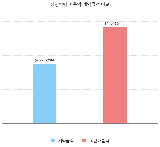 계약규모는 867억 8천만 원으로 최근 매출액인 1415억 9천만 원 대비 61.29% 수준이다.