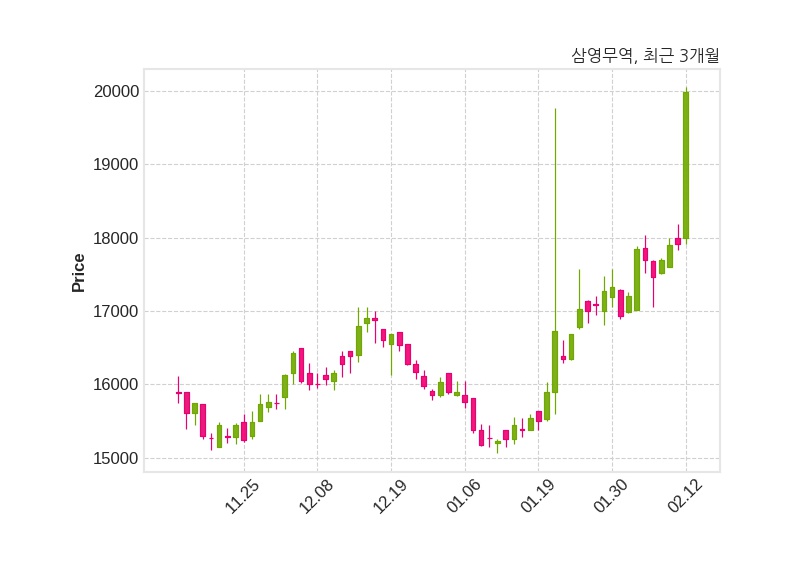 한편, 삼영무역의 15시 07분 현재주가는 19,980원으로 직전 거래일 대비 2,070원(+11.56%) 상승이며, 거래량은 79,559주이다.