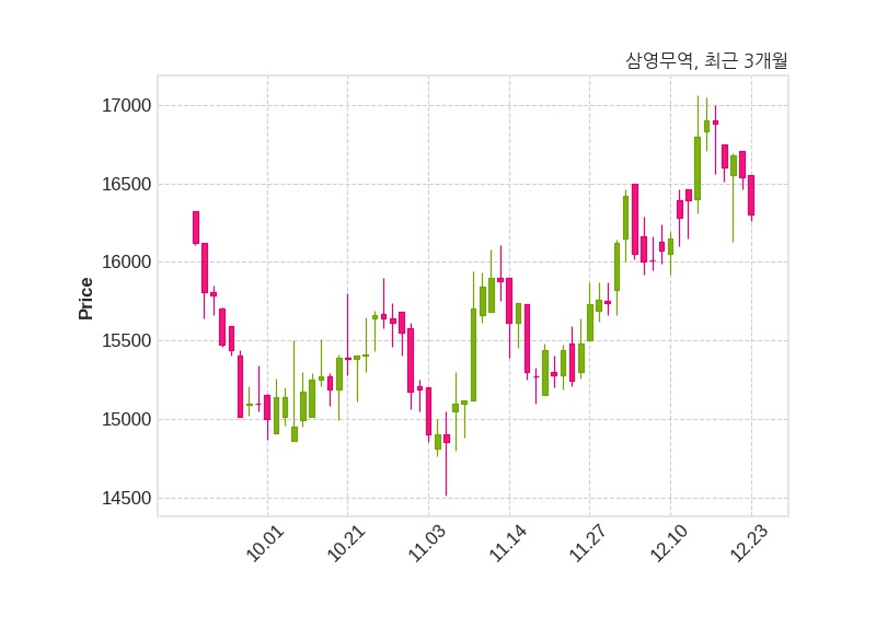 한편, 삼영무역의 15시 19분 현재주가는 16,300원으로 직전 거래일 대비 240원(-1.45%) 하락이며, 거래량은 14,679주이다.