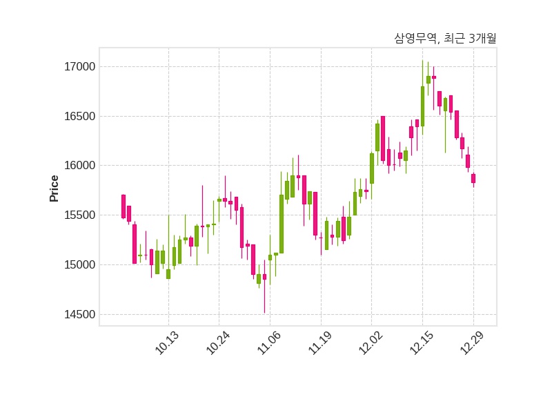 한편, 삼영무역의 14시 58분 현재주가는 15,830원으로 직전 거래일 대비 150원(-0.94%) 하락이며, 거래량은 26,505주이다.