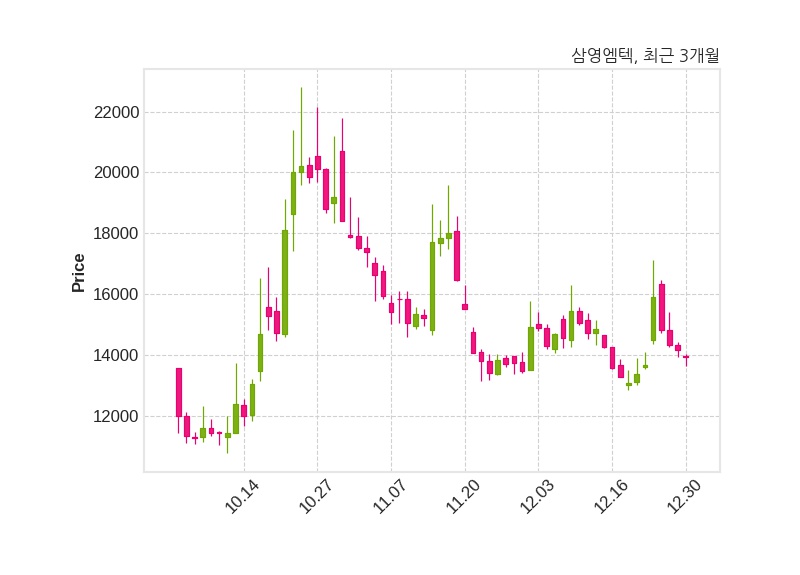 한편, 삼영엠텍의 14시 03분 현재주가는 13,940원으로 직전 거래일 대비 210원(-1.48%) 하락이며, 거래량은 402,630주이다.