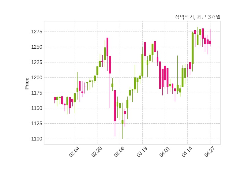 한편, 삼익악기는 장 마감 이후 해당 기업공시를 발표했으며 오늘 종가가 1,255원, 거래량은 176,945주로, 직전 거래일 대비 변동이없다.