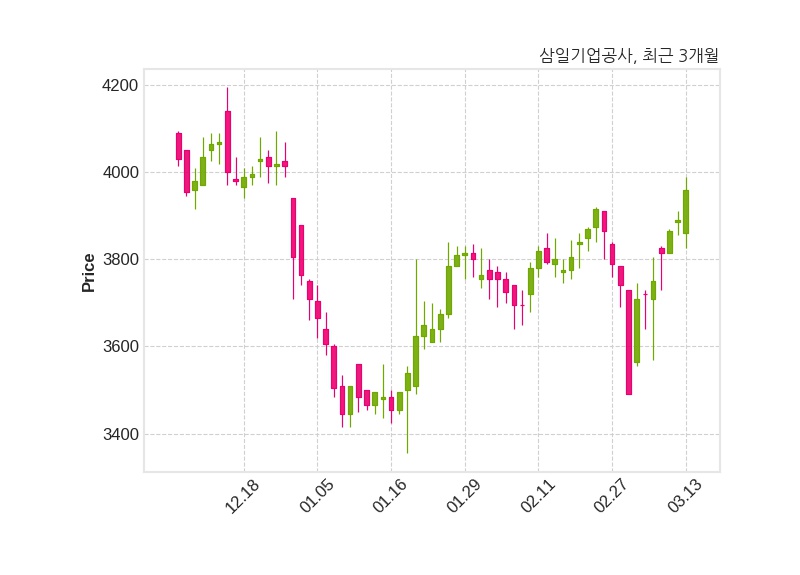 한편, 삼일기업공사는 장 마감 이후 해당 기업공시를 발표했으며 오늘 종가가 3,960원, 거래량은 90,101주로, 직전 거래일 대비 70원(+1.8%) 상승했다.