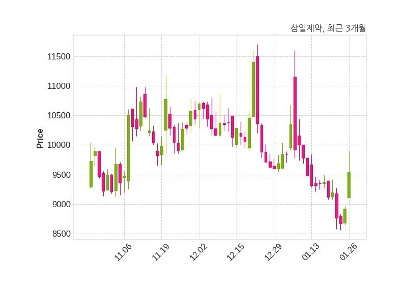 한편, 삼일제약은 장 마감 이후 해당 기업공시를 발표했으며 오늘 종가가 9,540원, 거래량은 846,951주로, 직전 거래일 대비 620원(+6.95%) 상승했다.