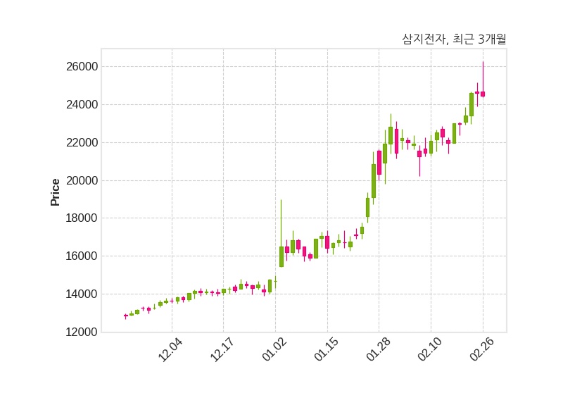 한편, 삼지전자는 장 마감 이후 해당 기업공시를 발표했으며 오늘 종가가 24,450원, 거래량은 116,185주로, 직전 거래일 대비 150원(-0.61%) 하락했다.