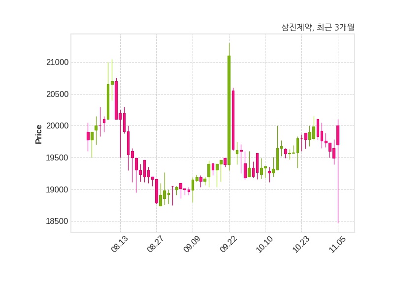 한편, 삼진제약은 장 마감 이후 해당 기업공시를 발표했으며 오늘 종가가 19,700원, 거래량은 93,902주로, 직전 거래일 대비 210원(+1.08%) 상승했다.