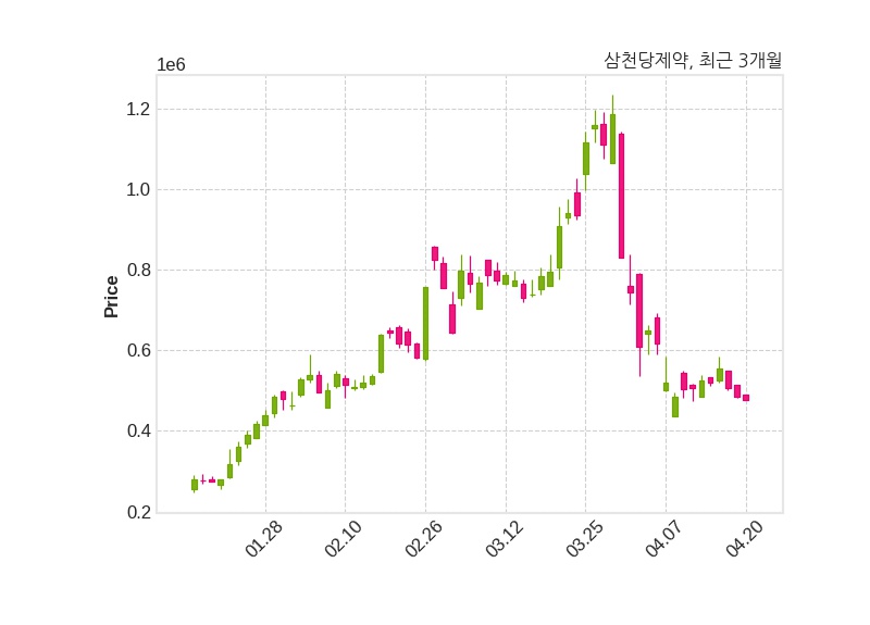 한편, 삼천당제약은 장 마감 이후 해당 기업공시를 발표했으며 오늘 종가가 477,500원, 거래량은 168,476주로, 직전 거래일 대비 8,000원(-1.65%) 하락했다.
