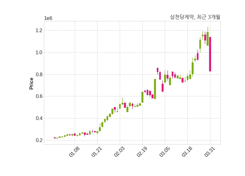삼천당제약은 영업실적 등에 대한 전망 또는 예측 공정공시 미이행으로 불성실 공시법인으로 지정예고 됐다고 31일 공시했다.사유는 영업실적 등에 대한 전망 또는 예측 공정공시 미이행이며, 불성실 공시법인 지정여부 결정시한은 2026년 4월 23일이다.한편, 삼천당제약은 장 마감 이후 해당 기업공시를 발표했으며 오늘 종가가 829,000원, 거래량은 1,221,552주로, 직전 거래일 대비 355,000원(-29.98%) 하락했다.공시 전문으로 이동