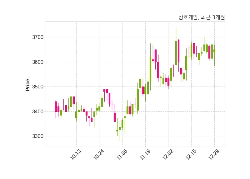 한편, 삼호개발은 장 마감 이후 해당 기업공시를 발표했으며 오늘 종가가 3,650원, 거래량은 42,940주로, 직전 거래일 대비 20원(-0.54%) 하락했다.