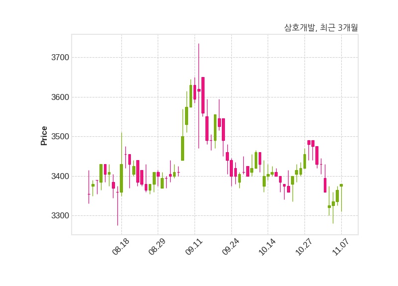 한편, 삼호개발은 장 마감 이후 해당 기업공시를 발표했으며 오늘 종가가 3,380원, 거래량은 42,049주로, 직전 거래일 대비 15원(+0.45%) 상승했다.