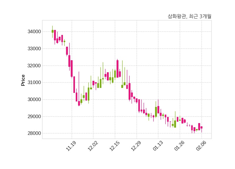 한편, 삼화왕관은 장 마감 이후 해당 기업공시를 발표했으며 오늘 종가가 28,300원, 거래량은 673주로, 직전 거래일 대비 100원(+0.35%) 상승했다.