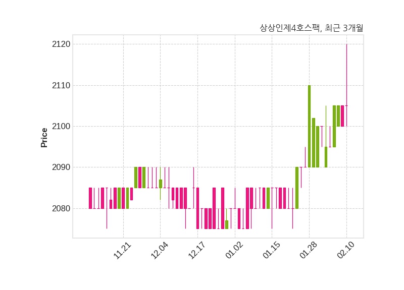 상상인제4호스팩은 특별관계자 한강에셋자산운용의 지분율이 8.12%에서 5.09%로 변동했다고 10일 공시했다. 한편, 상상인제4호스팩의 14시 15분 현재주가는 2,105원으로 직전 거래일 대비 5원(+0.24%) 상승이며, 거래량은 7,633주이다.