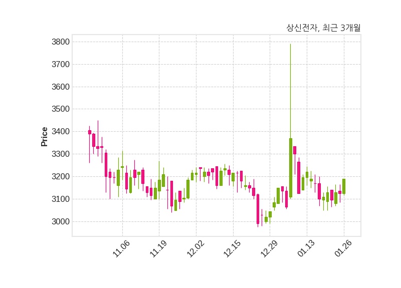 한편, 상신전자는 장 마감 이후 해당 기업공시를 발표했으며 오늘 종가가 3,190원, 거래량은 54,889주로, 직전 거래일 대비 65원(+2.08%) 상승했다.
