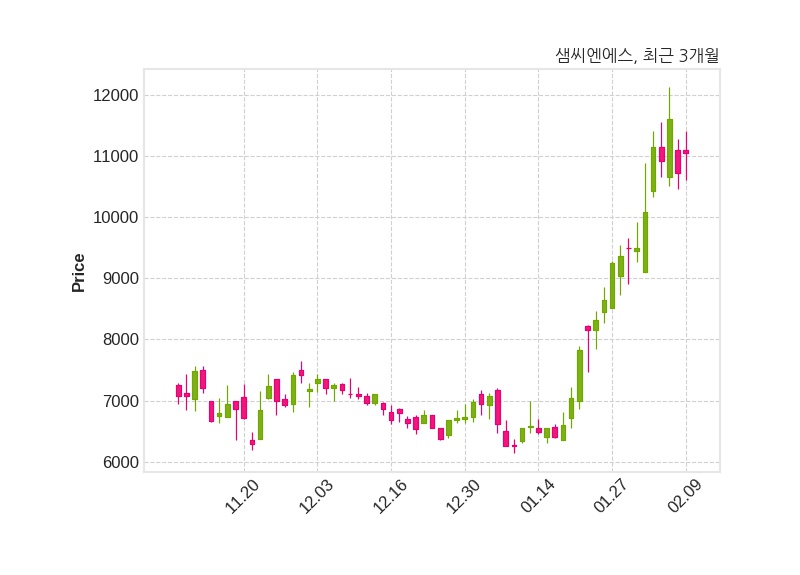 한편, 샘씨엔에스의 14시 16분 현재주가는 11,050원으로 직전 거래일 대비 330원(+3.08%) 상승이며, 거래량은 1,708,038주이다.