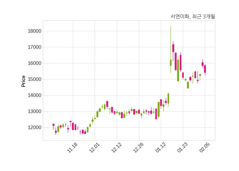 한편, 서연이화는 장 마감 이후 해당 기업공시를 발표했으며 오늘 종가가 15,430원, 거래량은 347,304주로, 직전 거래일 대비 420원(-2.65%) 하락했다.