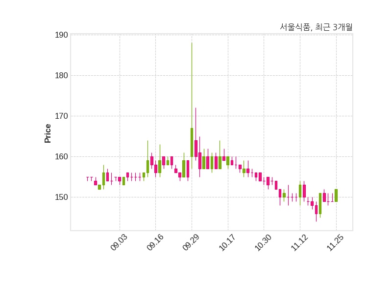 한편, 서울식품공업은 장 마감 이후 해당 기업공시를 발표했으며 오늘 종가가 152원, 거래량은 2,353,340주로, 직전 거래일 대비 3원(+2.01%) 상승했다.