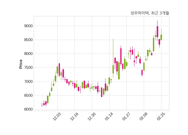 한편, 성우하이텍의 14시 48분 현재주가는 8,680원으로 직전 거래일 대비 350원(+4.2%) 상승이며, 거래량은 1,831,860주이다.