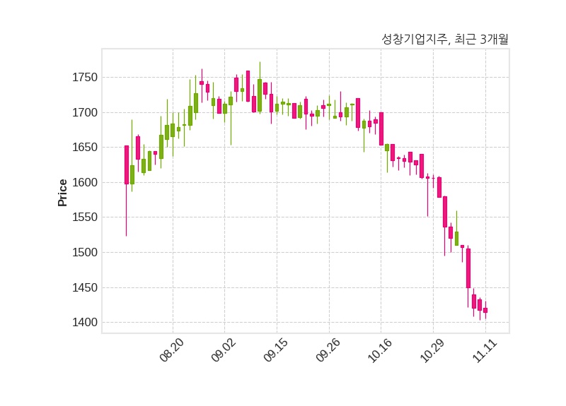 한편, 성창기업지주는 장 마감 이후 해당 기업공시를 발표했으며 오늘 종가가 1,414원, 거래량은 84,855주로, 직전 거래일 대비 3원(-0.21%) 하락했다.