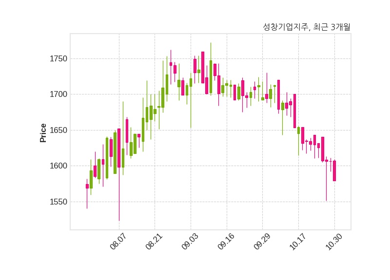 한편, 성창기업지주는 장 마감 이후 해당 기업공시를 발표했으며 오늘 종가가 1,579원, 거래량은 56,227주로, 직전 거래일 대비 27원(-1.68%) 하락했다.