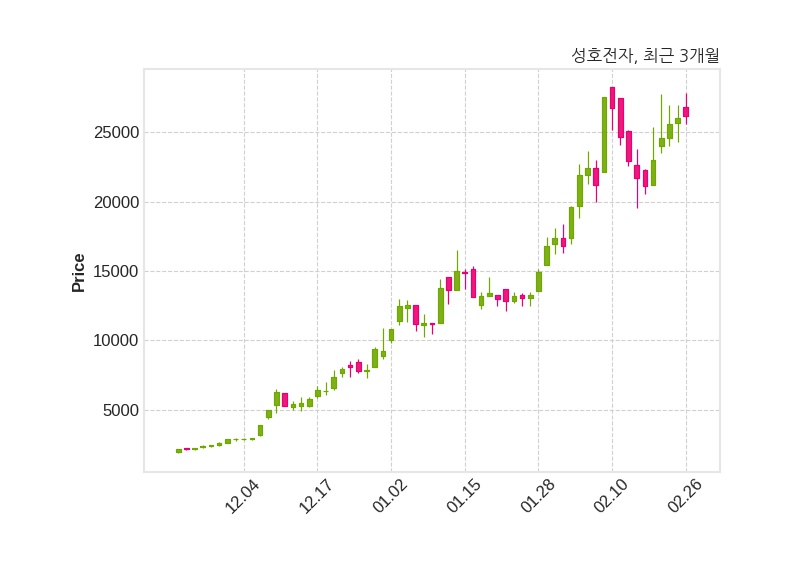 한편, 성호전자의 11시 54분 현재주가는 26,200원으로 직전 거래일 대비 200원(+0.77%) 상승이며, 거래량은 1,173,620주이다.