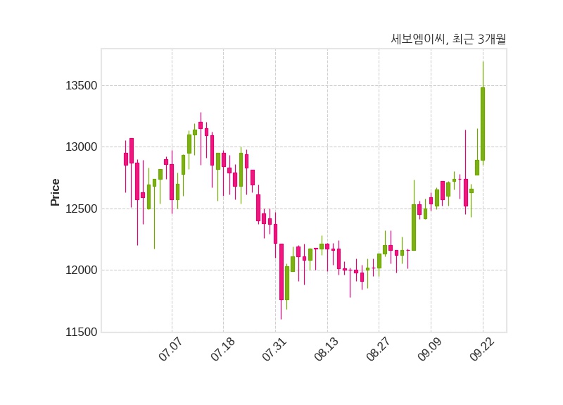 한편, 세보엠이씨의 11시 25분 현재주가는 13,480원으로 직전 거래일 대비 590원(+4.58%) 상승이며, 거래량은 64,466주이다.