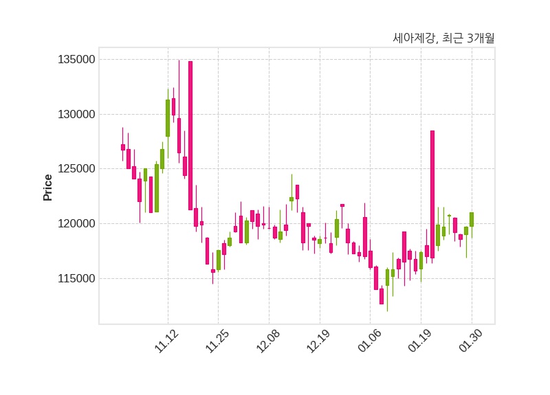 한편, 세아제강의 14시 54분 현재주가는 121,000원으로 직전 거래일 대비 1,300원(+1.09%) 상승이며, 거래량은 12,764주이다.