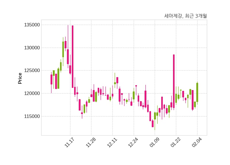 한편, 세아제강의 14시 37분 현재주가는 122,300원으로 직전 거래일 대비 4,100원(+3.47%) 상승이며, 거래량은 10,984주이다.