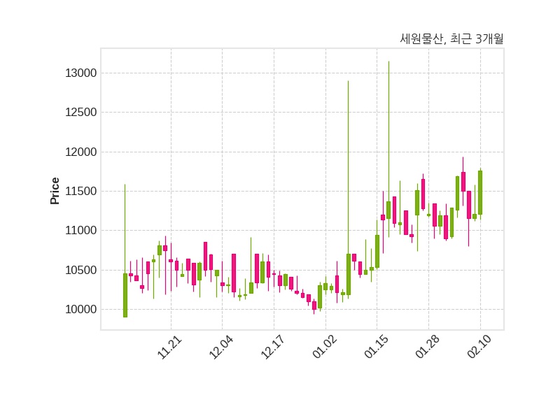 한편, 세원물산은 장 마감 이후 해당 기업공시를 발표했으며 오늘 종가가 11,760원, 거래량은 12,611주로, 직전 거래일 대비 550원(+4.91%) 상승했다.