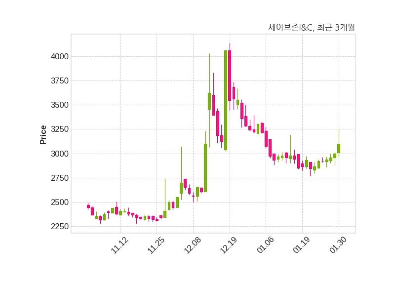 한편, 세이브존I&C은 장 마감 이후 해당 기업공시를 발표했으며 오늘 종가가 3,095원, 거래량은 666,332주로, 직전 거래일 대비 95원(+3.17%) 상승했다.