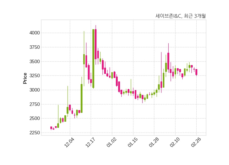 한편, 세이브존I&C은 장 마감 이후 해당 기업공시를 발표했으며 오늘 종가가 3,265원, 거래량은 200,951주로, 직전 거래일 대비 95원(-2.83%) 하락했다.